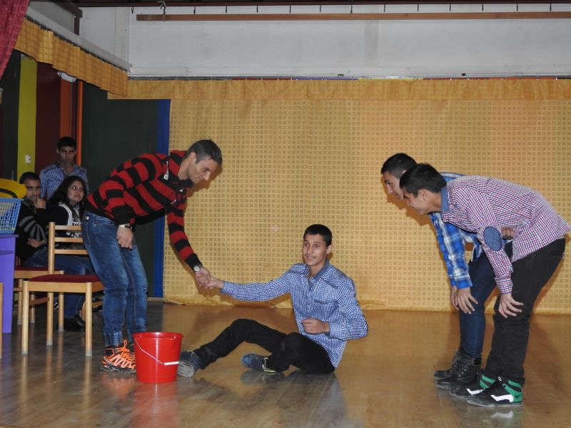 Niekoľkomesačný projekt spolupráce medzi Divadlom z chatrče a Slovenským národným divadlom (financovaný z dotácie Úradu splnomocnenca pre národnostné menšiny) sa blíži k záveru. Posledným podujatím bol divadelný workshop konaný 7.12.2015 v Moldave nad Bodvou. Lektorky Miriam Kičiňová (lektorka dramaturgie SND) a Veronika Stepanovičová (študentka réžie a dramaturgie VŠVU) sa najskôr pozreli na vystúpenie DzCH a následne realizovali s členmi Divadla z chatrče nácvik rôznych divadelných techník a postupov. Bolo to super podujatie! Veríme, že sa mladým rómskym divadelníkom zíde všetko, čo sa počas workshopu naučili.